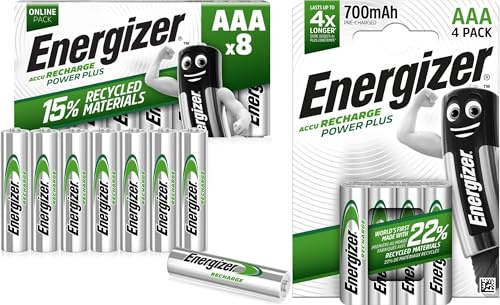 Energizer 638622 Power Plus Batteria Ricaricabile, AA, 4 Pezzi, 2000 mAh, Argento